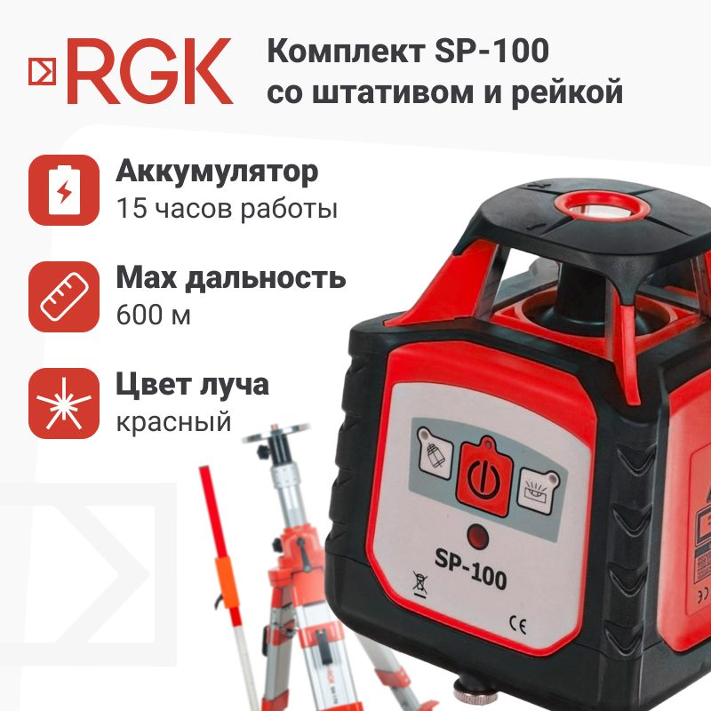 Ротационный лазерный нивелир RGK SP-100 со штативом SH-170 и рейкой LR-2