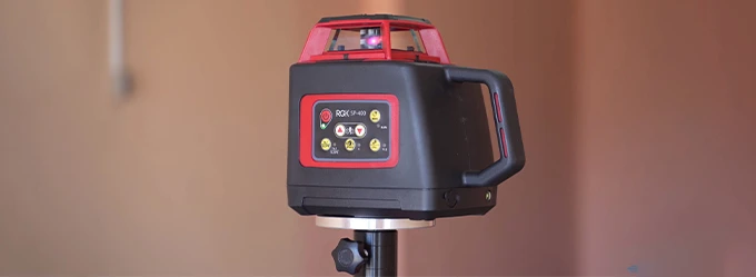 Сервоприводный компенсатор ротационного нивелира стабилизирует луч в рамках допустимого диапазона, если прибор стоит на кривой поверхности. Если отклонение превышает 5°, то сработает сигнализация. В этом случае замигают лазер и зеленый индикатор на панели управления. Если ничего не делать, то спустя 2 мин лазерный нивелир RGK SP-400G автоматически отключится.