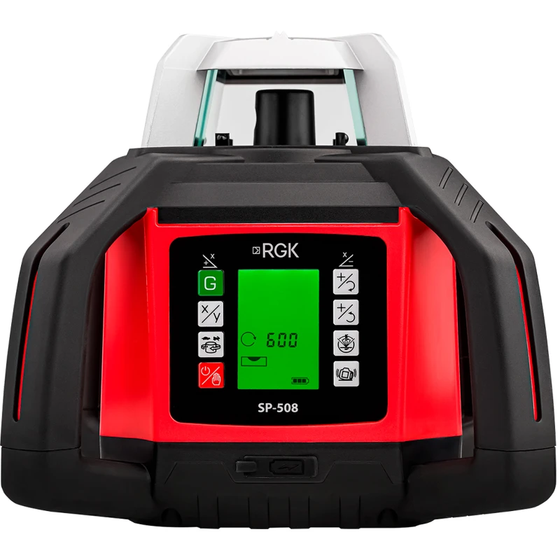 Ротационный нивелир RGK SP-508 — обновлённая версия модели SP-502. Он сохранил её главные преимущества, но получил важное новшество — автоматическую ориентацию луча на приёмник. Благодаря этой функции прибор сам выстраивает лазерную плоскость по заданной отметке, избавляя от ручной подстройки и заметно ускоряя работу.