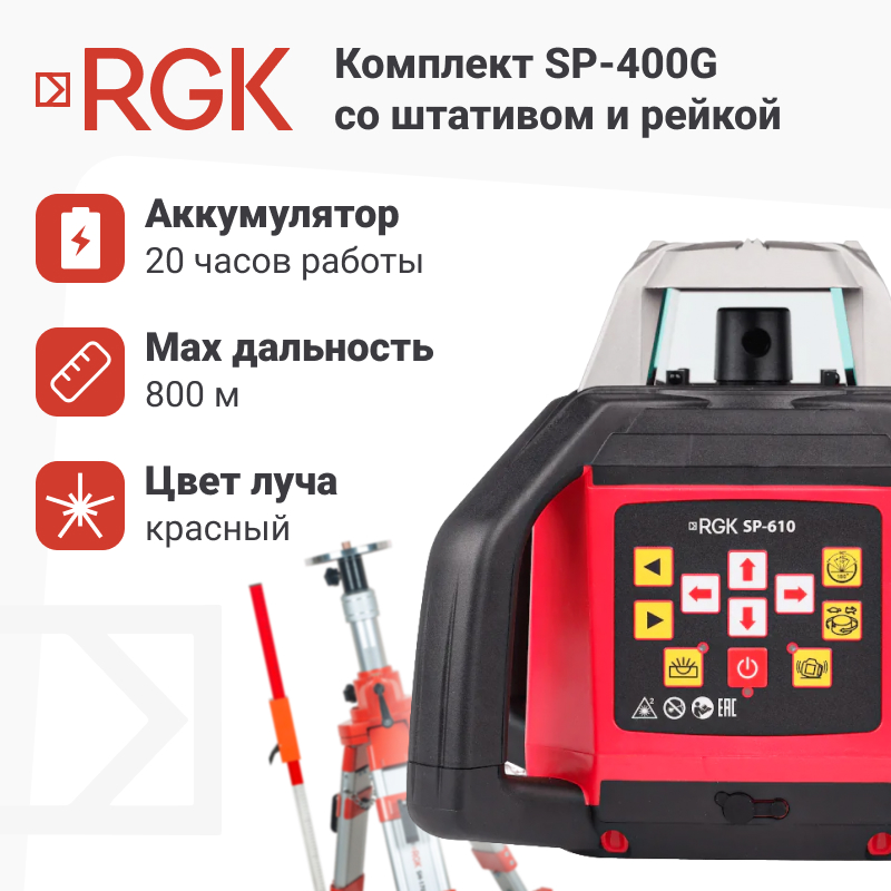 Ротационный нивелир RGK SP-610 со штативом SH-170 и рейкой LR-2